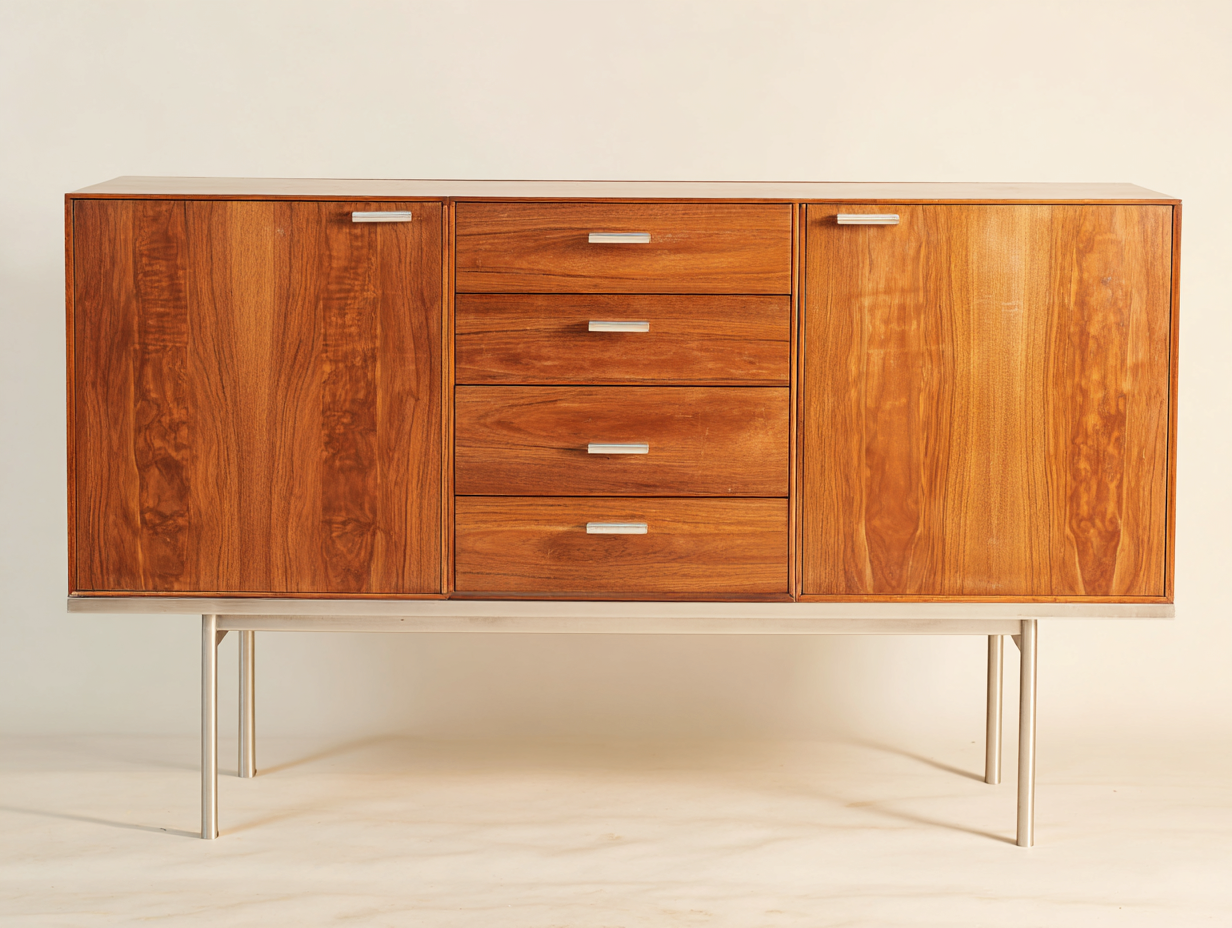 Questo armadio in legno si distingue per un'estetica moderna ed equilibrata, con una struttura orizzontale ben proporzionata. Il design pulito mette in risalto la superficie in noce naturale, creando un effetto elegante e ordinato.